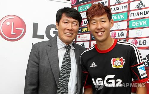 | △ 레버쿠젠의 손흥민(오른쪽)과 차범근 전 수원 삼성 감독.<<연합뉴스 자료사진>> |