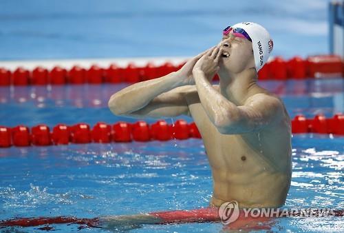▲▲쑨양은 경기 후 국제수영연맹(FINA) 홈페이지에 실린 인터뷰에서 "정말 이루기 쉽지 않은 일인데 이 종목에서 3회 연속 금메달을 따 무엇보다 기쁘다"고 소감을 밝혔다.