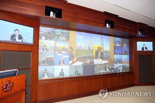| △ 행정자치부, 시·도 행정부지상·부지사 영상회의 (서울=연합뉴스) 정재근 행정자치부 차관이 6일 서울 정부서울청사에서 시·도 행정부시장·부지사 영상회의를 진행하고 있다. (행정자치부 제공) |