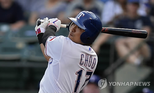 (댈러스=연합뉴스) 장현구 특파원 = 미국프로야구 텍사스 레인저스의 한국인 타자 추신수(33)가 연속 경기 안타 행진을 '7'에서 마감했다.