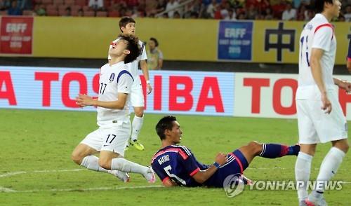 | △ 일본전 슈팅후 아쉬워하는 이재성(왼쪽).<<연합뉴스 자료사진>> |