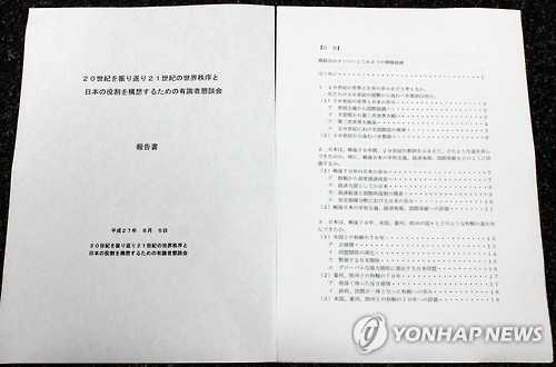 아베 담화 관련 총리 자문기구인 '21세기 구상 간담회'는 6일 아베 총리에게 전달한 보고서에서 과거 전쟁 때 일본의 행위가 '침략'이었음을 인정하고, 식민지배에 대해서도 언급했다. 또 '과거 전쟁에 대한 통절한 반성'이라는 표현은 넣었지만 사죄는 거론하지 않았다.