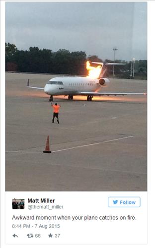 미국 CNN 방송과 폭스 방송에 따르면, 승객을 태우고 게이트를 떠난 이 비행기는 갑자기 뒤쪽 보조 엔진 쪽에 화염이 치솟자 서둘러 엔진을 껐다.