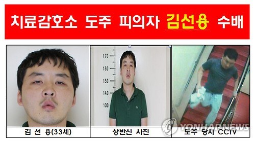 9일 공주치료감호소 등에 따르면 이날 오후 2시 17분께 대전의 한 병원에서 입원 치료를 받던 김선용(33)씨가 발목에 채워진 수갑을 풀어준 틈을 이용해 도주했다.