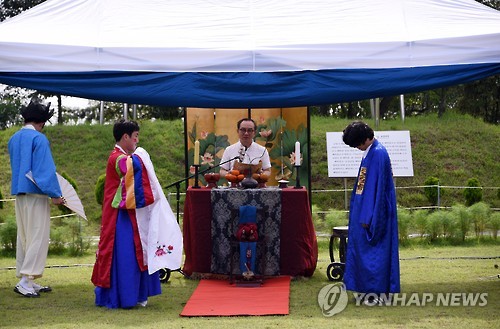 | △ 광복 70주년 기념 'DMZ 평화예술제' (서울=연합뉴스) 광복 70주년을 맞아 9일 인천 강화 평화전망대 잔디마당에서 한국예술종합학교의 'DMZ(비무장지대) 평화예술제'가 열리고 있다. 한국과 아시아 지역 신진예술가 100여명이 참여한 가운데 남북의 새로운 출발을 기원하는 의미를 담은 '새로운 출발-혼례굿'이 열렸다. 2015.8.9 << 한국예술종합학교 제공 >> photo@yna.co.kr |
