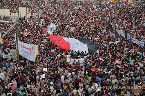 섭씨 50도를 넘나드는 불볕더위가 이어지는데도 전기와 상수도 공급이 원활하지 않자 지난달 말부터 이라크 곳곳에서 연일 대규모 시위가 벌어졌다.