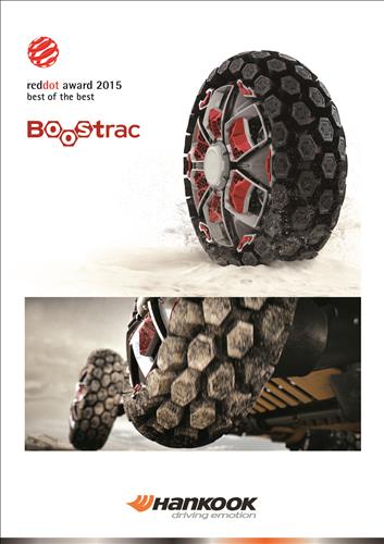 이번에 최우수상을 수상한 미래형 콘셉트 타이어 '부스트랙'은 혁신적인 타이어를 개발하는 한국타이어의 '디자인 이노베이션 2014' 프로젝트를 통해 독일 포츠하임대학과의 공동 연구로 탄생했다.