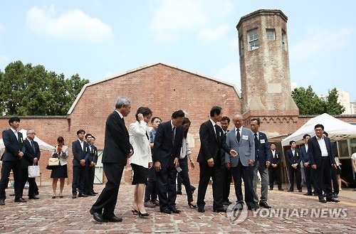 | △ 고개숙인 하토야마 전 일본 총리 (서울=연합뉴스) 한종찬 기자 = 12일 오후 한국을 찾은 하토야마 유키오(鳩山由紀夫) 전 일본 총리가 서울 서대문형무소를 방문해 목례하고 있다. |