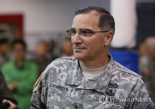 (서울=연합뉴스) 이영재 기자 = 커티스 스캐퍼로티 한미연합사령관이 12일 최윤희 합참의장과 함께 북한군이 매설한 목함지뢰 폭발사고로 중상을 당한 부사관 2명을 문병했다.