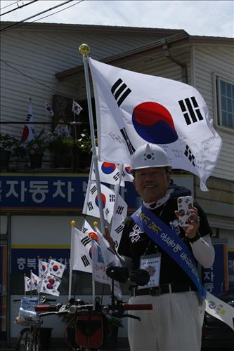 태극기 휘날리며 달려온 15년…충주 태극기 전도사 연종택씨