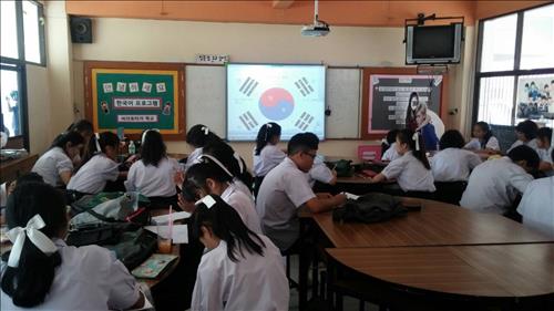 한국 정부는 중등학교들이 한국어를 제2외국어로 채택하도록 하기 위해 2011년부터 태국에 매년 한국인 한국어 교원 40~60명을 파견해왔다.