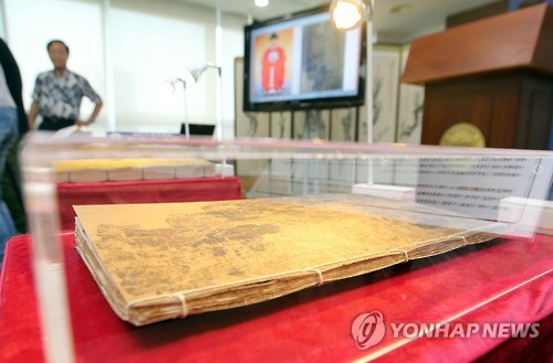 | △ 충무공 유물 '장계별책' 장물업자가 박물관에 팔아 (대전=연합뉴스) 양영석 = 부산의 한 박물관에서 발견된 이순신 장군의 유물 '장계별책'이 장물이라고 13일 대전경찰 광역수사대가 발표했다. 충무공 후손의 지인이 유출해 장물업자에게 넘긴 것을 박물관 측이 구입했다는 것이다. 사진은 장물로 밝혀진 장계별책. 2015.8.13 youngs@yna.co.kr |