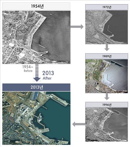 | △ 1954년부터 2013년 사이 여수항을 촬영한 항공사진. <<국토지리정보원>> |