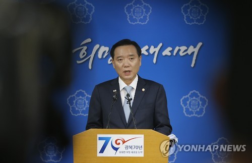 | △ 광복 70주년 특별사면 발표 (서울=연합뉴스) 황광모 기자 = 김현웅 법무부 장관이 13일 오전 서울 세종로 정부서울청사에서 임시국무회의에서 의결된 광복 70주년 특별 사면을 발표하고 있다. |