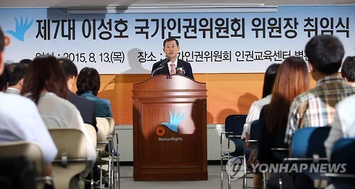 | △ 취임사 하는 이성호 신임 국가인권위원장 (서울=연합뉴스) 박동주 기자 = 이성호 신임 국가인권위원장이 13일 오후 서울 중구 인권위에서 열린 취임식에서 취임사를 하고 있다. 2015.8.13 pdj6635@yna.co.kr |