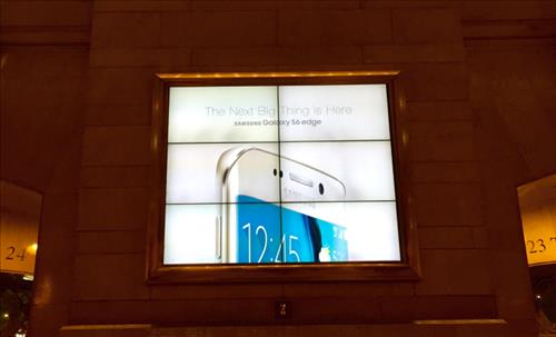 뉴욕의 곳곳을 잇는 '그랜드 센트럴 터미널' 내부 광고판 2개는 아예 엣지플러스 몫이었다. 엣지플러스 광고 영상은 경쟁 모델 아이폰6+를 진열해 놓은 애플 스토어 맞은편에 떡하니 위치했다.