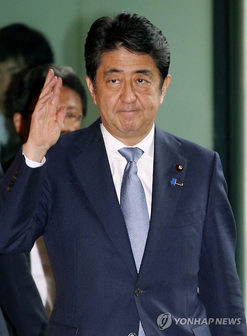 | △ (도쿄 교도=연합뉴스) 아베 신조(安倍晋三) 일본 총리가 14일 오후 도쿄 총리관저로 들어가고 있다. |