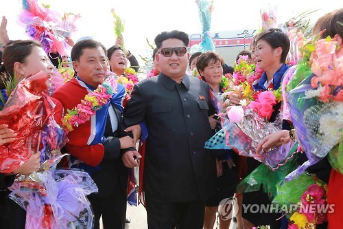 | △ 북한 김정은, 동아시안컵 우승 여자축구선수들 공항까지 마중 2015.8.11 |