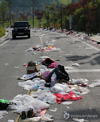 지난 13일 밤 강원도 평창에서 열린 MBC TV '2015 무한도전 영동고속도로 가요제' 현장이 쓰레기로 몸살을 앓고 있다는 소식이 전해지자 15일 사회관계망서비스(SNS)는 낮은 시민의식을 개탄하는 목소리로 들끓어 올랐다.