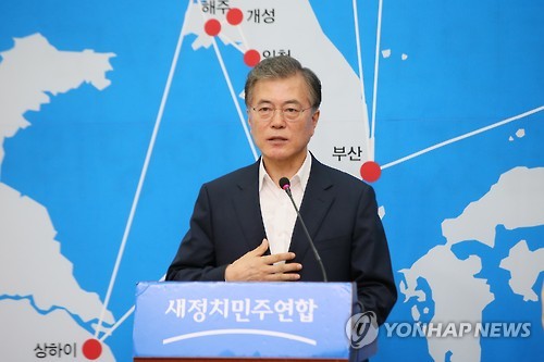 (서울=연합뉴스) 송수경 서혜림 기자 = 새정치민주연합 문재인 대표는 16일 "우리가 살 길은 경제통일"이라며 '경제통일'을 차기 집권비전으로 선언, 환동해권과 환황해권을 양 날개로 하는 '한반도 신(新)경제지도' 구상을 밝혔다.