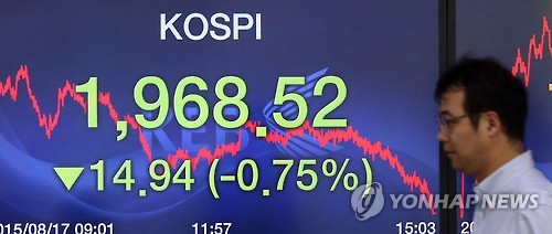 이날 코스피는 전 거래일보다 14.94포인트(0.75%) 내린 1,968.52에 거래를 마쳤다.