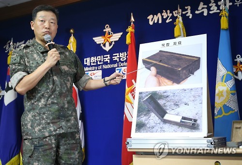 | △ 목함지뢰 조사결과 발표하는 안영호 조사단장 (서울=연합뉴스) 임헌정 기자 = 안영호 국방부 조사단장(국방전비태세검열단 부단장)이 10일 서울 용산 국방부에서 북한이 비무장지대(DMZ)에 살상용 목함지뢰를 매설한 행위와 관련한 조사결과를 발표하고 있다. 2015.8.10 kane@yna.co.kr |