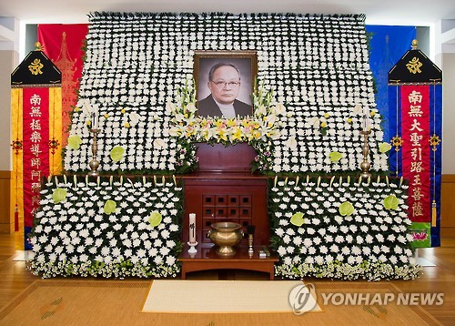 | △ 고 이맹희 CJ 명예회장 빈소 (서울=연합뉴스) 17일 서울 종로구 대학로 서울대학교병원 장례식장에 마련된 이맹희 CJ그룹 명예회장 빈소. (CJ그룹 제공) |