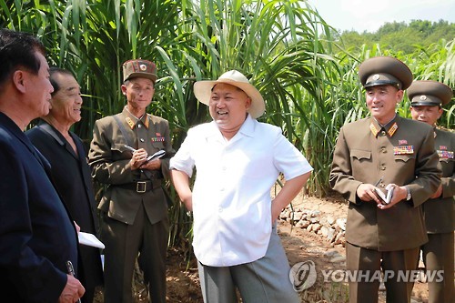 | △ 종자농장 시찰하는 북한 김정은 (평양 조선중앙통신=연합뉴스) 북한 김정은 국방위원회 제1위원장이 지난 5월에 이어 인민군 종자연구농장인 제810부대 산하 1116호 농장을 시찰했다고 조선중앙통신이 13일 보도했다. 2015.8.13 photo@yna.co.kr |