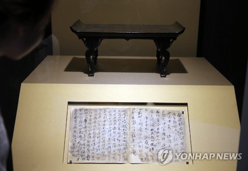 | △ 류성룡이 쓴 전란의 기억 '징비록'을 만나다 (서울=연합뉴스) 이정훈 기자 = 국립민속박물관은 한국국학진흥원과 함께 광복 70주년을 기념해 9월 30일까지 박물관 기획전시실에서 특별전 '징비록'을 개최한다. 박물관 상설전시관에서 열리고 있는 풍산류씨 집안의 가족 이야기 전과 연계해 열리는 이번 전시에는 한국국학진흥원이 소장한 징비록 초간본 원본도 공개된다. 사진은 이달 31일까지 공개되는 국보 제132호인 징비록 초간본과 류성용이 사용한 경상. 2015.8.11 uwg806@yna.co.kr |