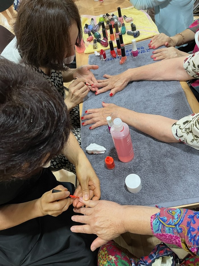 이날은 거센 비가 내리는 궂은 날씨 속에서도 단지 내 체력단련실에 20여 명이 넘는 어르신이 방문해 염색, 헤어 커트, 매니큐어, 발톱 정리 등의 서비스를 받았다.