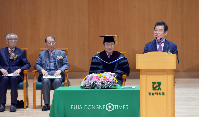 윤장현 광주광역시장이 1일 오후 북구 용봉동 전남대학교 민주마루에서 열린 정병석 제20대 전남대 총장 취임식에 참가하여 축사를 했다.