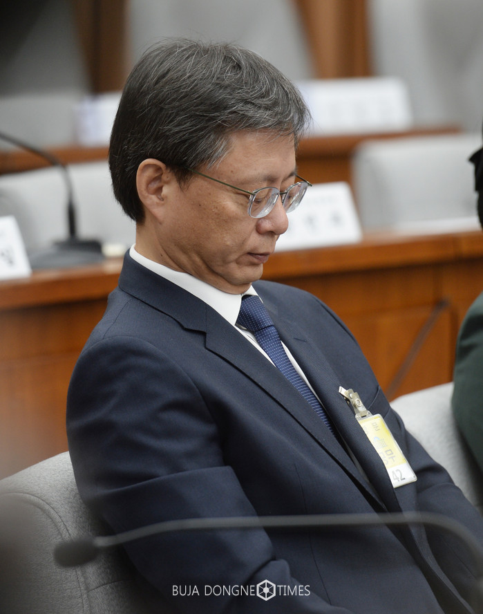 우병우 전 청와대 민정수석이 22일 오후 서울 여의도 국회에서 열린 최순실 국정농단 의혹 진상규명을 위한 국정조사 특위 5차 청문회에 증인으로 출석해 생각에 잠겨 있다. 2016.12.22.