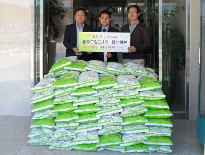 [광주=부자동네타임즈 손권일 기자]광주드림교회가 9월 9일 추석을 맞아 어려운 이웃에게 나눠달라며 광산구 월곡1동주민센터에 쌀 10㎏ 100포를 전달했다.