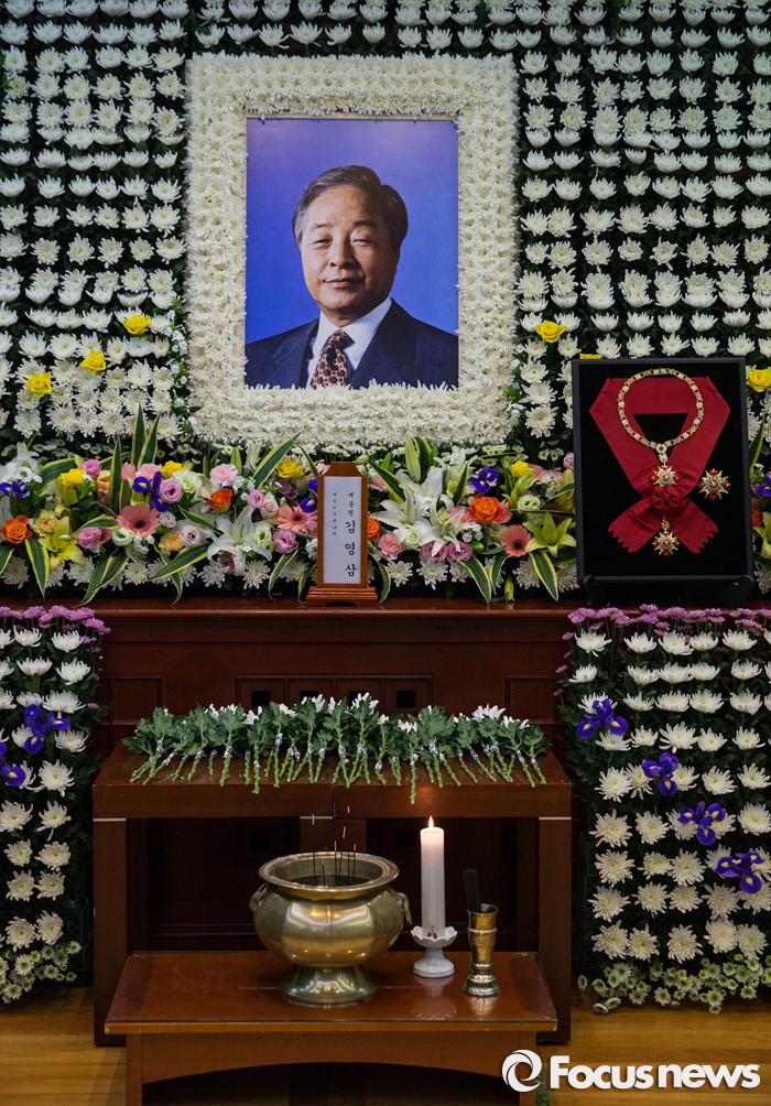| △ 22일 서울 종로구 서울대병원 장례식장에 마련된 김영삼 전 대통령 빈소에 김 전 대통령 영정사진이 놓여 있다. 사진공동취재단 photo@focus.kr |