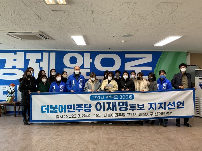 [부자동네타임즈 김인수기자] '이재명 후보를 지지하는 고양특례시 학부모 300인'은 지난 2일 오전, 더불어민주당 일산서구 선거대책위원회(위원장 이용우) 정당선거사무소에서 이재명 후보 지지선언을 진행했다.