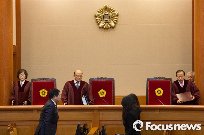 앞서 지난 2001년 헌재는 같은 조항을 두고 합헌이라고 결정한 바 있다.박한철 헌법재판소 소장이 23일 오후 헌법재판소 대심판정에서 한일청구권 협정의 위헌 여부에 대한 선고를 위해 입장하고 있다. 2015.12.23 허란 기자