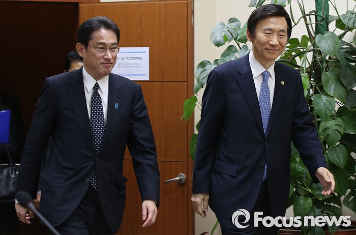 윤병세 외교부 장관과 기시다 후미오(岸田文雄) 일본 외무상은 28일 오후 장관회담을 마친 뒤 연 공동 기자회견에서 "국장급 협의를 포함해 양국 간 다양한 채널을 통한 협의를 토대로 양국이 수용 가능한 협의를 도출했다"고 밝혔다.