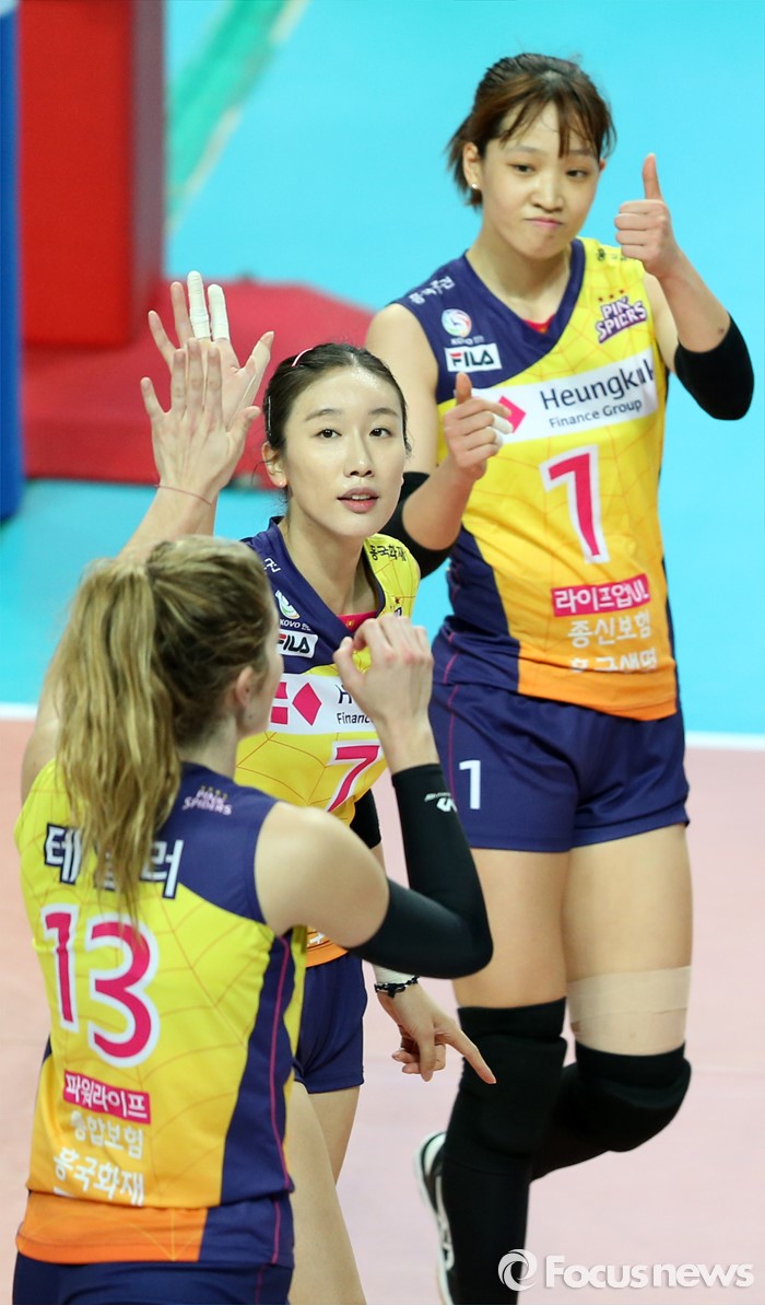 이날 승리한 흥국생명은 11승 6패 승점 30점을 기록하며 2위 IBK기업은행을 2점차로 따돌리고 2위로 올라섰다. 2연승에도 성공했다. 반면 현대건설은 연승 기록이 4경기에서 끝나며 13승 4패째를 기록하게 됐다. 비록 이날 경기에서의 완패로 현대건설은 올시즌 흥국생명과의 상대전적에서 1승 3패로 열세에 놓이게 됐다. 범실을 23개나 범한 것이 아쉬웠던 현대건설이었다. 하지만 승점 38점으로 여전히 1위를 유지하고 있다.(서울=포커스뉴스) 19일 장충체육관에서 열린 '2015-2016NH농협 V-리그' 여자부 GS칼텍스-흥국생명 경기에서 흥국생명 테일러가 공격을 성공시키고 동료들과 기뻐하고 있다. 2015.11.19 우정식 기자