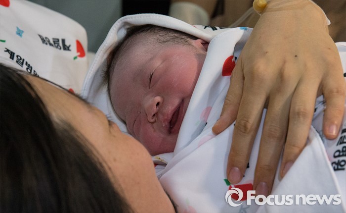 (서울=포커스뉴스) 2016년 병신년(丙申年) 새해가 밝은 1일 새벽 서울 중구 제일병원에서 윤형섭 씨와 권남희 씨 사이에서 3.28kg의 건강한 딸 '꼬미'(태명)가 태어나서 엄마를 향해 미소 짓고 있다.