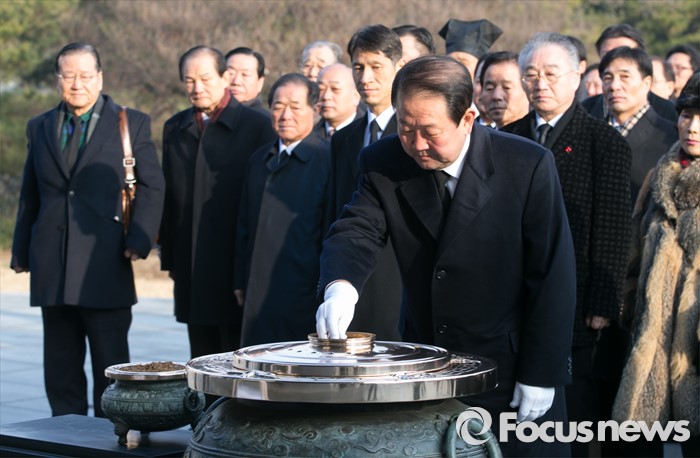 (서울=포커스뉴스) 병신년(丙申年) 새해 첫 날인 1일 오전 동작구 국립서울현충원에서 통합신당 창당을 준비 중인 박주선 무소속 의원이 현충탑 참배를 하고 있다.