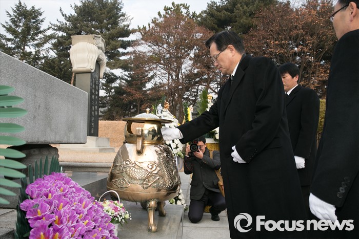 (서울=포커스뉴스) 병신년(丙申年) 새해 첫 날인 1일 오전 동작구 국립서울현충원에서 정의화 국회의장이 이승만 전 대통령 묘역 참배를 하고 있다.