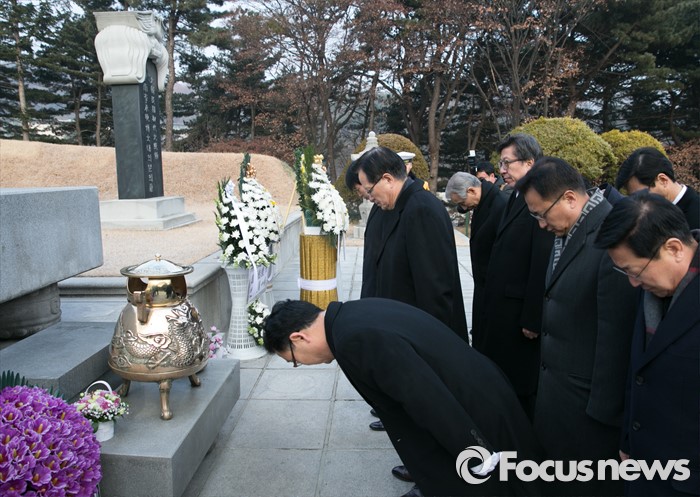 (서울=포커스뉴스) 병신년(丙申年) 새해 첫 날인 1일 오전 동작구 국립서울현충원에서 정의화 국회의장이 이승만 전 대통령 묘역 참배를 하고 있다.