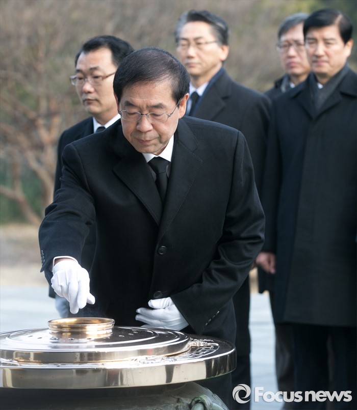(서울=포커스뉴스) 병신년(丙申年) 새해 첫 날인 1일 오전 동작구 국립서울현충원에서 박원순 서울시장이 현충탑 참배를 하고 있다.