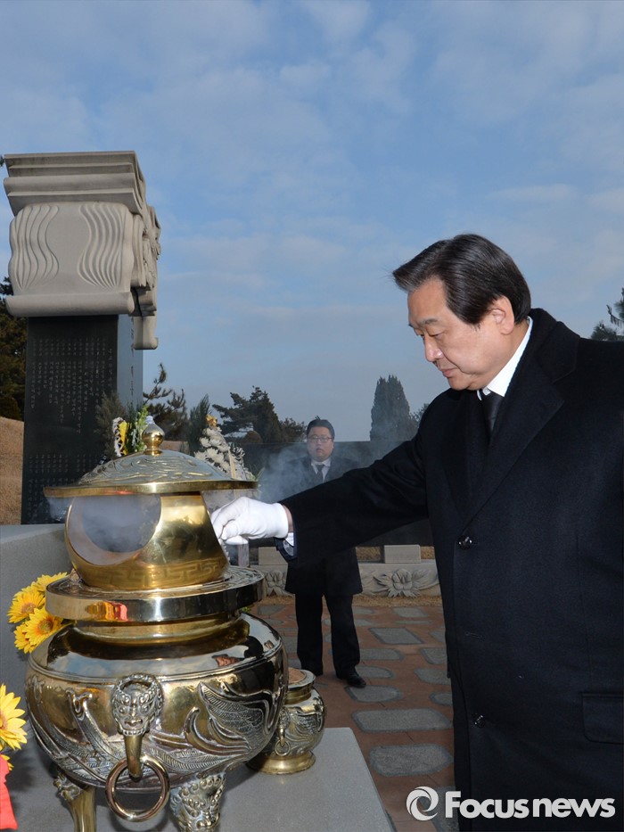 | △ 새해 첫 날, DJ 묘역에서 참배하는 김무성 대표 |