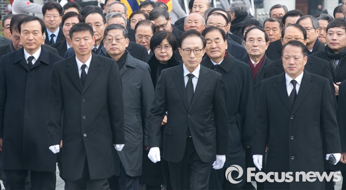 (서울=포커스뉴스) 병신년(丙申年) 새해 첫 날인 1일 오전 동작구 국립서울현충원에서 이명박 전 대통령이 현충탑 참배를 위해 이동하고 있다.