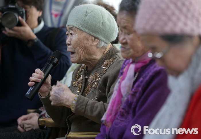 (광주=포커스뉴스) 병신년(丙申年) 새해 첫 날인 1일 오후 이옥선 할머니가 경기도 광주 일본군 위안부 피해자 쉼터 나눔의 집을 방문한 원유철 새누리당 원내대표 등 의원들과의 간담회에서 발언하고 있다.