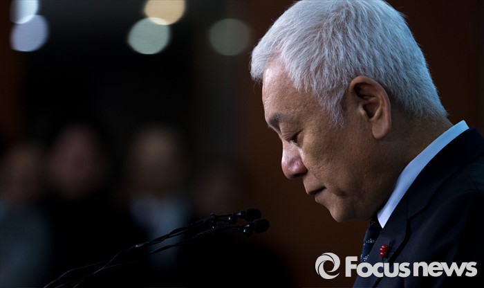 (서울=포커스뉴스) 김한길 더불어민주당 전 공동대표가 3일 오전 서울 여의도 국회 정론관에서 탈당 선언 기자회견을 하고 있다.