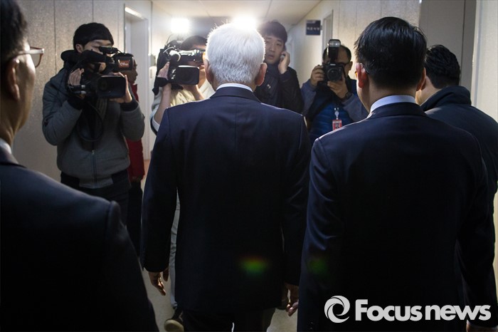 (서울=포커스뉴스) 김한길 더불어민주당 전 공동대표가 3일 오전 서울 여의도 국회 정론관에서 탈당 선언 기자회견을 마치고 차량으로 향하고 있다.