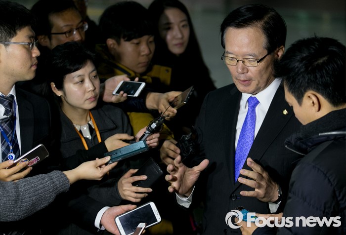 (서울=포커스뉴스) 정의화 국회의장이 4일 오전 서울 여의도 국회로 출근하며 취재진 질문에 답하고 있다. 중앙선관위 산하 선거구획정위는 지난 2일 정 의장이 제시한 선거구 획정기준에 대해 전체회의를 열고 논의했지만 합의도출에 실패했다.