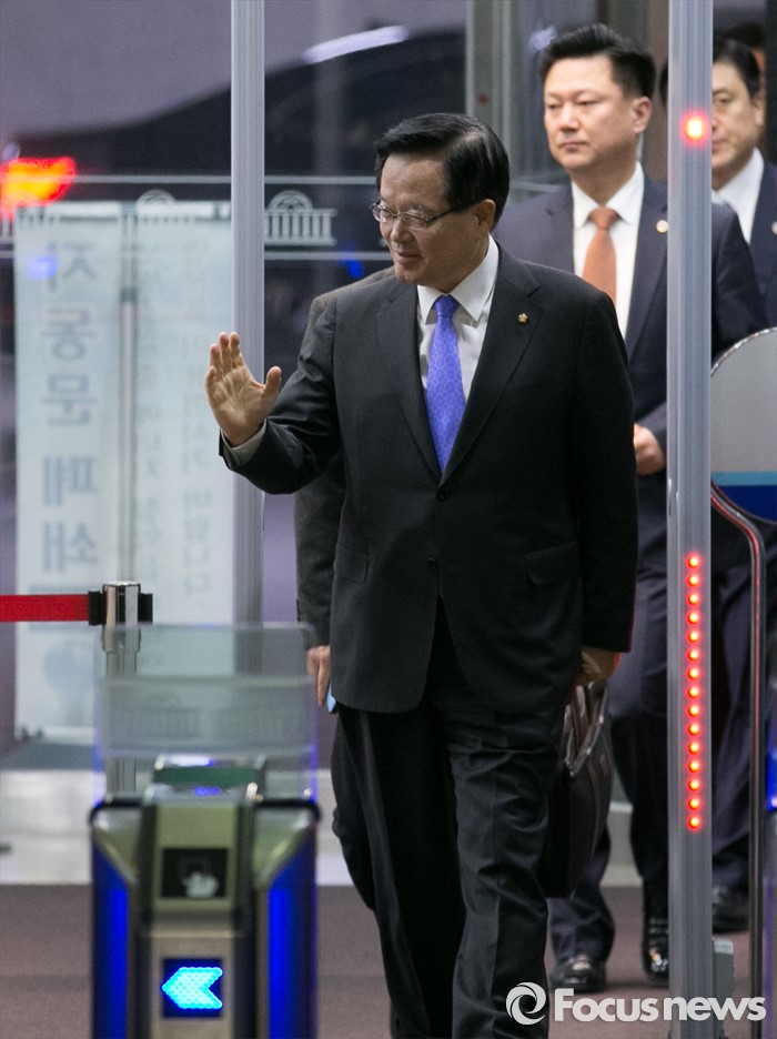 (서울=포커스뉴스) 정의화 국회의장이 4일 오전 서울 여의도 국회로 출근하고 있다. 중앙선관위 산하 선거구획정위는 지난 2일 정 의장이 제시한 선거구 획정기준에 대해 전체회의를 열고 논의했지만 합의도출에 실패했다.